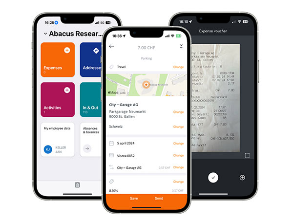 The partnership between Abacus Research AG and Viseca will enable you to harmonise your expense process, from payment through to expense processing. After paying with your Viseca company credit card, you can scan the receipt and allocate it directly to the credit card transaction. The data on receipts is recognised and recorded automatically and can be forwarded for approval if required. Once approved, it is booked automatically to financial accounting and reconciliation is carried out in real time.